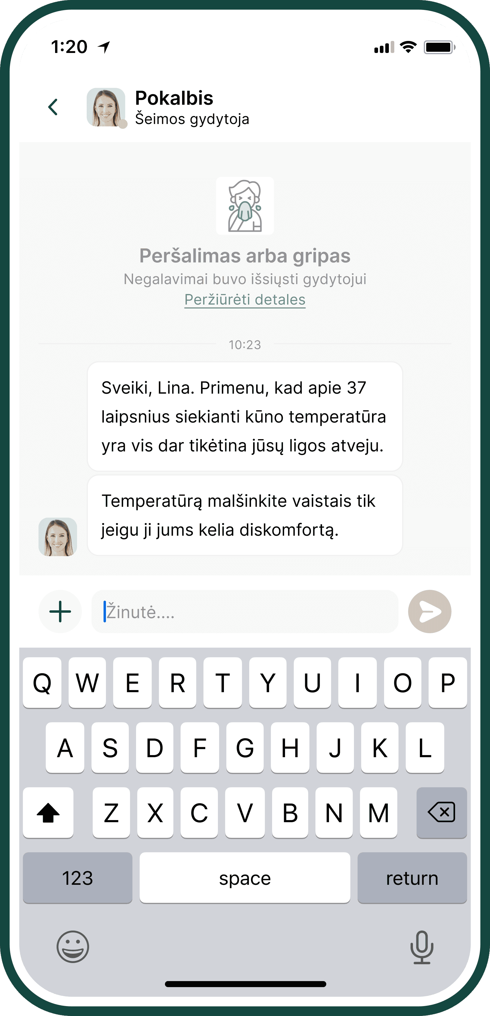 - Bendraukite su gydytoju žinutėmis 2 dienas