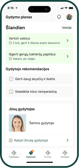 Gaukite individualų gydymo planą, mitybos rekomendacijas, e. receptą vaistams ir aiškius tolimesnius žingsnius.